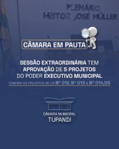Confira mais três importantes Projetos de Lei que a Câmara Municipal de Tupandi aprovou por unanimidade, que trarão melhorias para a Educação e a Administração Pública. Confira os detalhes: